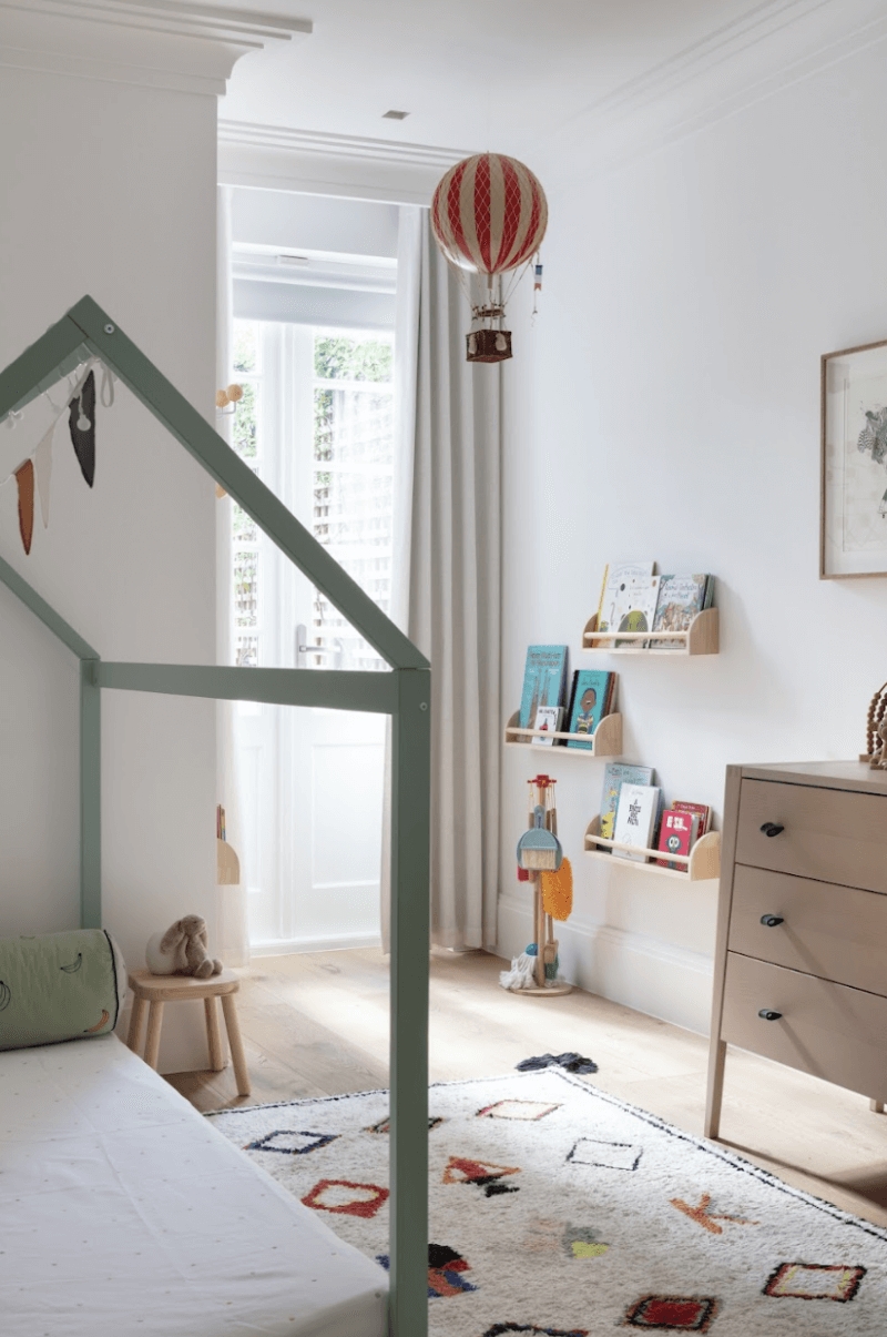 Bespoke furniture and joinery play a key role in our residential children’s projects. Window seats with hidden storage, integrated desks, book displays, and multi-functional pieces allow the room to adapt over time without losing its sense of calm.